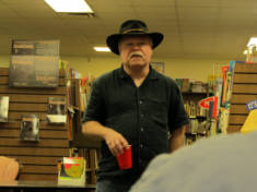 Talking to some new fans. George Scott, in-store promotions.